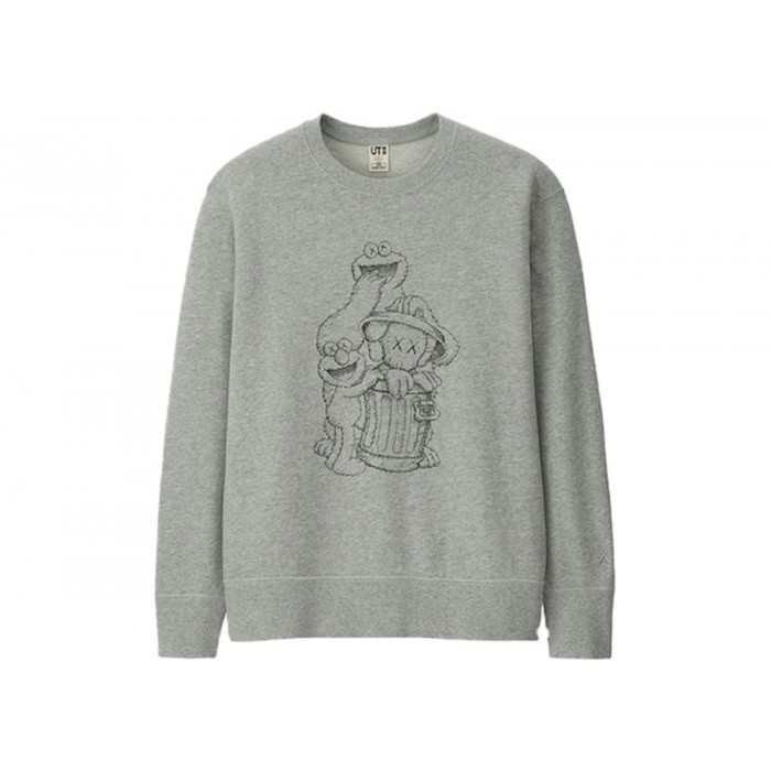 Гарантия нашей работы KAWS x Uniqlo x Sesame Street Companion Trash Can Outline Sweatshirt (Japanese Sizing) Gray