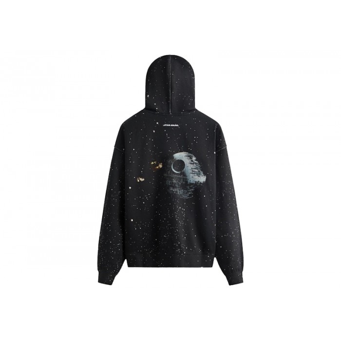 The Kith x STAR WARS War Hoodie is made from premium 450GSM cotton fleece, with a ribbed waistband and sleeve cuffs. It includes cotton drawcords and a kangaroo pocket on the front, and features an all-over Kith x STAR WARS galaxy motif, as well as special Kith x STAR WARS branding. Designed to have a relaxed, Williams III fit.Основные характеристики Kith x STAR WARS War Hoodie Black PH