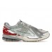 Верх кроссовок выполнен из синтетической сетки с заметными вентиляционными отверстиями, что способствует воздухообмену и делает модель комфортной в тёплое время года. Изогнутые синтетические оверлеи формируют каркас, усиливают ключевые зоны и придают силуэту характерный техничный облик. Вставки из кожи добавляют структуру и тактильное разнообразие, подчеркивая премиальное исполнение пары. Резиновая аутсоль отвечает за сцепление с поверхностью и износостойкость при повседневной эксплуатации.