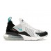 This version of the Nike Air Max 270 is made with a white mesh upper, revealing black mesh underneath. A black-film toe cap features a small Nike swoosh in Dusty Cactus on the outer side, while two more Nike swooshes are seen underneath the ankle on each side in the same color. The inner side also features 270 branding in Dusty Cactus. The heel counter is black and features debossed Air branding at the back, along with Air 270 branding in metallic silver on the outer side. The tongue also features black branding, while the heel pull tab is Dusty Cactus with another Nike swoosh. The heel features a clear 270-degree Air Max unit for all-around support, and the shoe sits on a white midsole and black outsole.