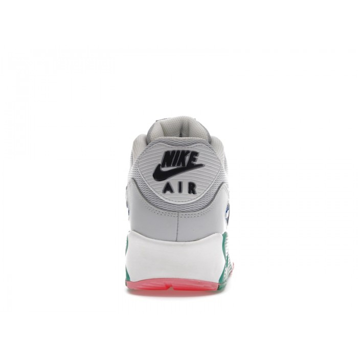 The Nike Air Max 90's bright color scheme features shades of teal and pink, accented by hits of black and white, while the visible Air Sole unit in the heel provides cushioning and support. The upper of the shoe is made of lightweight and breathable mesh material to keep the foot cool.