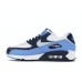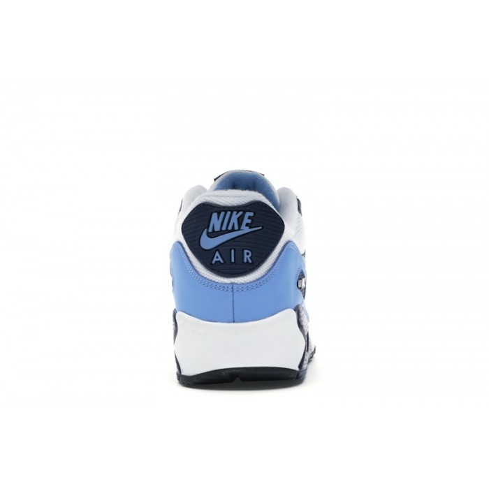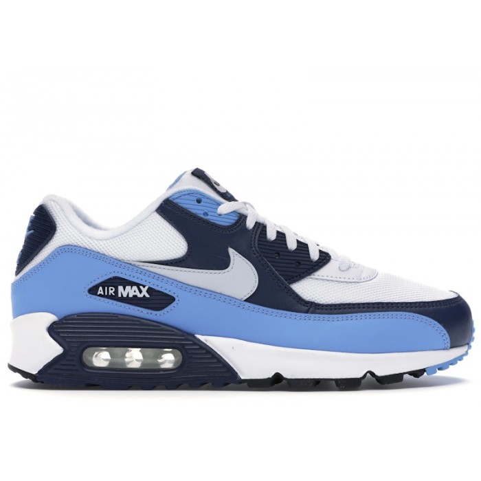 The Nike Air Max 90 UNC is one of Nike’s Air Max 90 sneakers that is appearing in White, Pure Platinum, University Blue, and Midnight Navy color schemes.