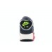 The Wolf Grey Rush Pink Nike Air Max 90 adopts a predominantly Wolf Grey mesh upper contrasting with Black accents on the lower panel and heel cap, Rush Pink eyelets, and a White-dressed side Swoosh. Its laces continue the Wolf Grey color scheme while its "Nike Air" and "Air Max" brandings appear in Volt color. The lower design includes a rubber midsole in white for impact absorption, the visible Air Max units for cushioning, and the treaded outsole to optimize friction on different surfaces.