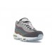 The Recycled Canvas Nike Air Max 95 shoe’s top is Grey with subdued textile overlays on the sides. The upper design also features a mini Swoosh on the heel, White-dressed shoelaces across the sneaker’s tongue to provide comfort and secure the feet, while its heel features Nike Air brandings. The sneaker's Air Max sole unit and its heel logo feature Volt color schemes within the White midsole. Concluding the lower design is the speckled Light Blue-colored Grind rubber outsole for traction
