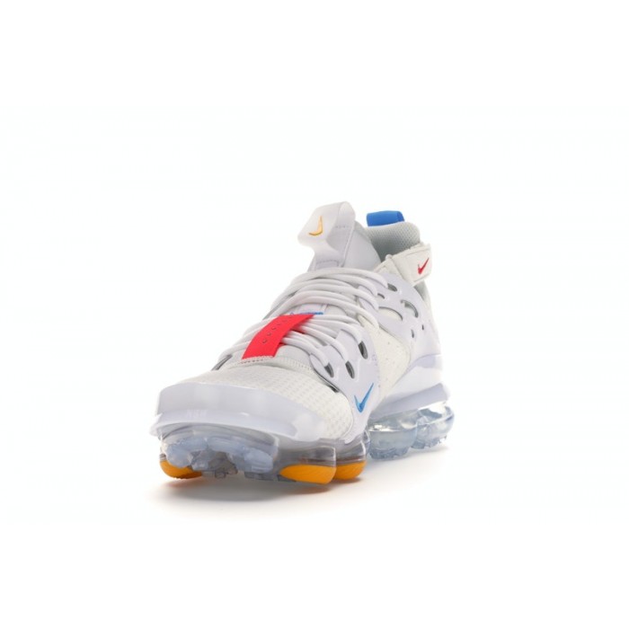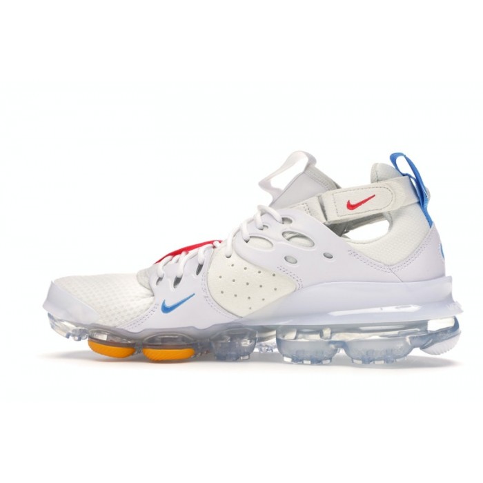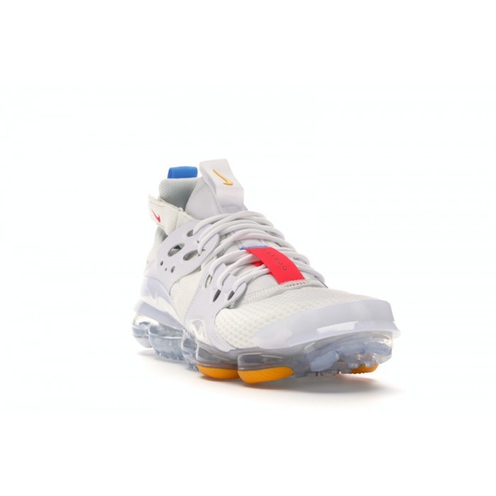 The Nike Air VaporMax D/MS/X Summit White upgrades the Nike Air VaporMax by transforming the upper with overlapping overlays, contrasting material, and bold cutouts.