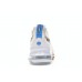 This futuristic sneaker features a Summit White base with Red Orbit, Battle Blue, and University Gold accents. While the upper is primarily leather, the overlays are durable plastic. Thin, white laces wind through the lace cage and house a flat tongue with a pull tab. In addition, a Velcro strap wraps around the back of the ankle and threads through a heel pull tab. Each branding element boasts a bright color. For example, the small Swoosh logos on the Velcro strap come in Red Orbit, while the "D/MS/X" lettering is printed across the Battle Blue heel tab.