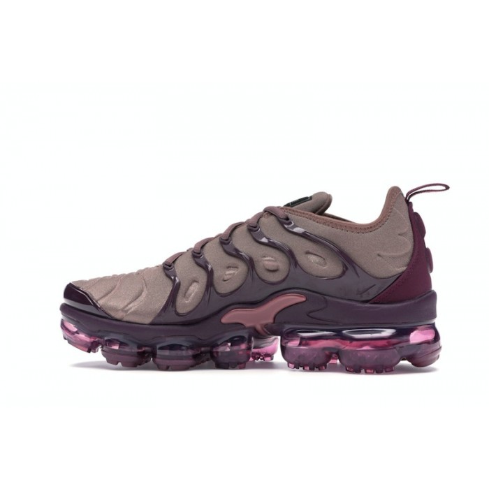 The Nike Air VaporMax Plus Bordeaux (Women's) blends hints of the original Air Max Plus design with modern technology. The Bordeaux Nike Air VaporMax Plus for women was created by designer Sean McDowell and is also referred to as "Bordeaux."