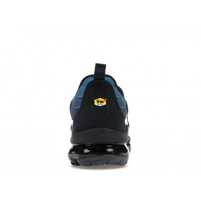The Nike Air VaporMax Plus Obsidian comes in an obsidian, obsidian-photo blue-black color palette.