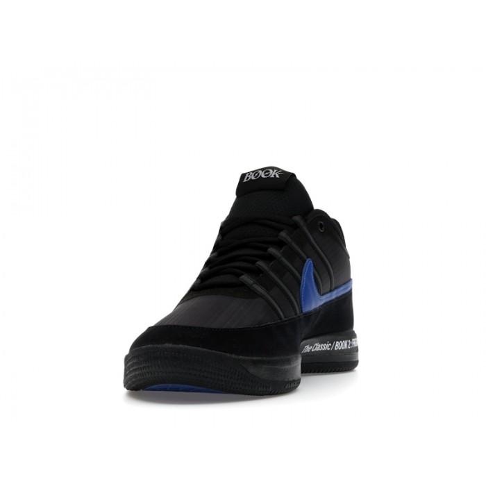 Nike Book 2 Fragment (SKU: IO9950-900) — баскетбольные кроссовки, созданные в коллаборации с Fragment Design, с низким профилем, Zoom Air в пятке и полноразмерной пеной для динамичной игры. Монохромный черный верх с акцентами Sport Royal и фирменной графикой подчеркивает минималистичный стиль Hiroshi Fujiwara.