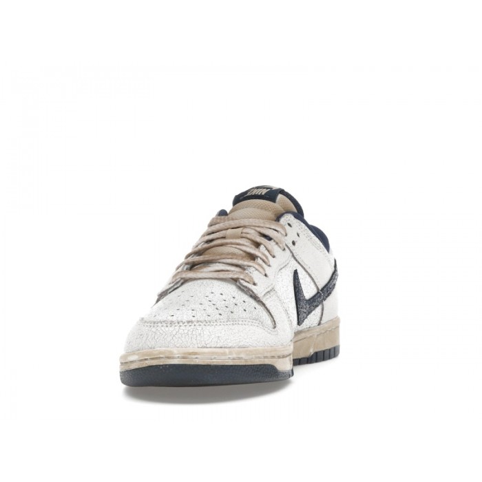 Модель Nike Dunk Low Stranger Things Phantom (SKU IH6766-001) является результатом коллаборации с популярным сериалом Stranger Things. Эти кроссовки выделяются состаренным дизайном с верхом из крэк-кожи и уникальными перевёрнутыми логотипами Nike, выполненными в основной расцветке Phantom и Midnight Navy.