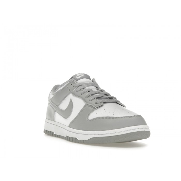 The Nike Dunk Low White Light Smoke Grey offers a fresh take on the classic silhouette, combining timeless design with contemporary colorways. This sleek sneaker features a pristine white leather base, complemented by light smoke grey overlays that add depth and dimension to the shoe. The iconic Nike Swoosh stands out in crisp white, creating a subtle yet striking contrast against the grey panels.