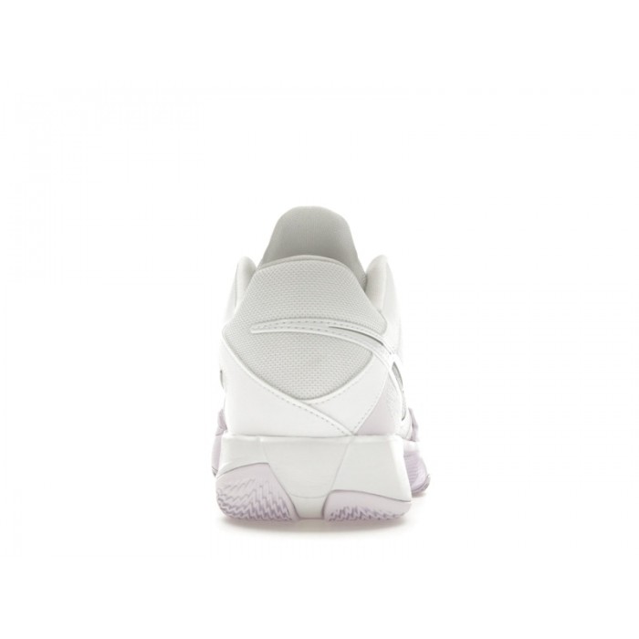 Визуально модель выполнена в светлой и легкой гамме. Основа верха цвета White дополнена мягкими пастельными оттенками Barely Grape и Pink Foam, которые создают плавный градиент и подчеркивают динамичность линий. Детали цвета Light Smoke Grey добавляют контрастности функциональным элементам. Эта расцветка выгодно выделяется на корте, сохраняя при этом универсальность для летнего спортивного сезона.