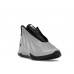Верх кроссовок выполнен из цельного литого материала с эффектным 3M reflective покрытием цвета Metallic Silver, что придает модели футуристичный и глянцевый вид, а также повышает видимость в условиях слабого освещения. Внутренняя часть кроссовка оснащена формованным «ботинком» для усиленной поддержки. Резиновая подметка с производительным рисунком протектора разработана специально для баскетбольных движений, обеспечивая надежное сцепление с поверхностью. Перфорация на медиальной стороне и мягкий воротник в области пятки обеспечивают необходимый баланс между воздухопроницаемостью и структурной стабильностью.