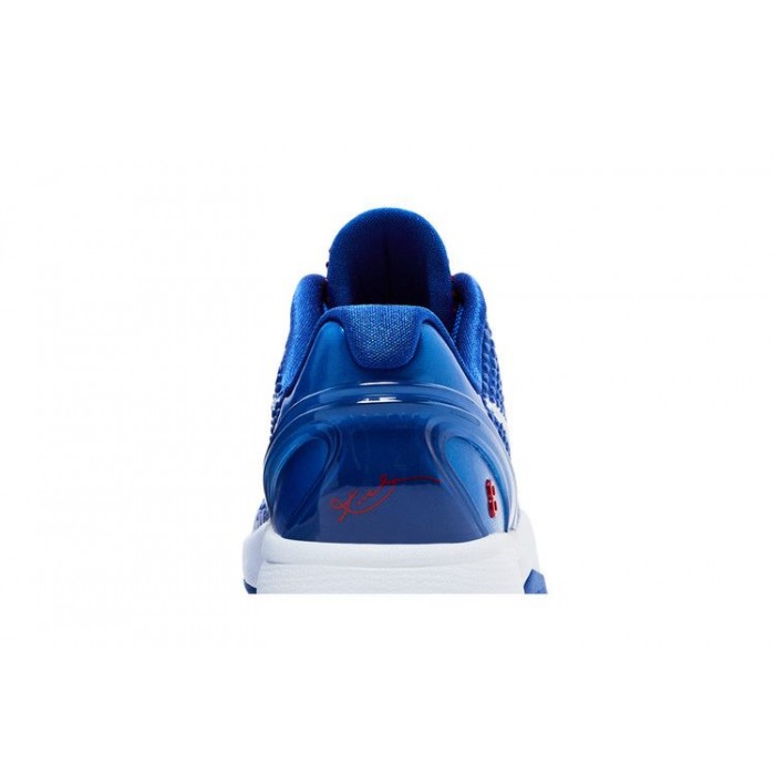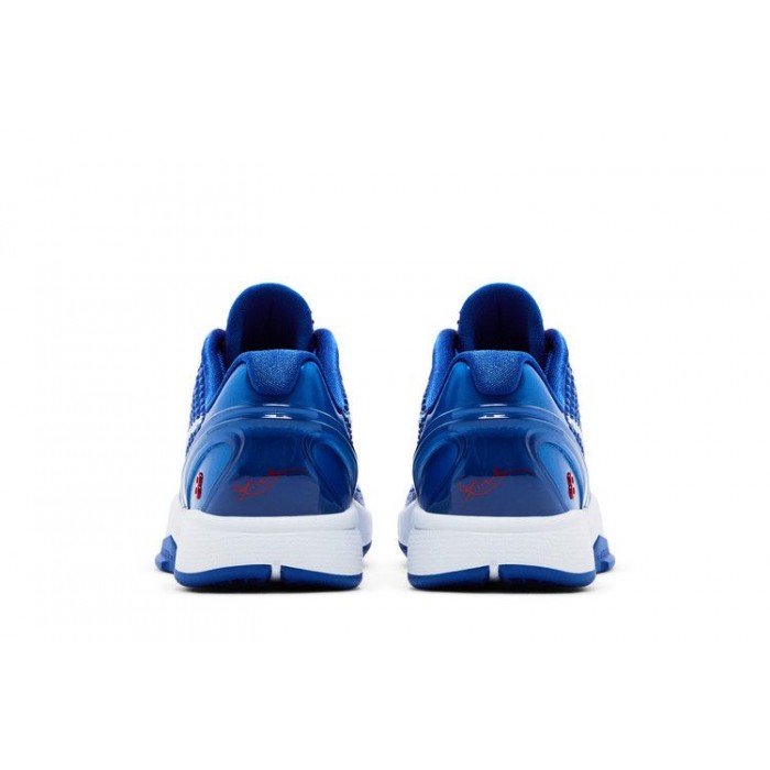 Кроссовки Nike Kobe 6 Protro Dodgers (GS) под артикулом FV9676-400 — это специальный выпуск, вдохновленный бейсбольной командой Los Angeles Dodgers, объединяющий спортивное наследие Kobe с амортизацией Zoom Air и культовыми цветами Game Royal, белым и University Red.