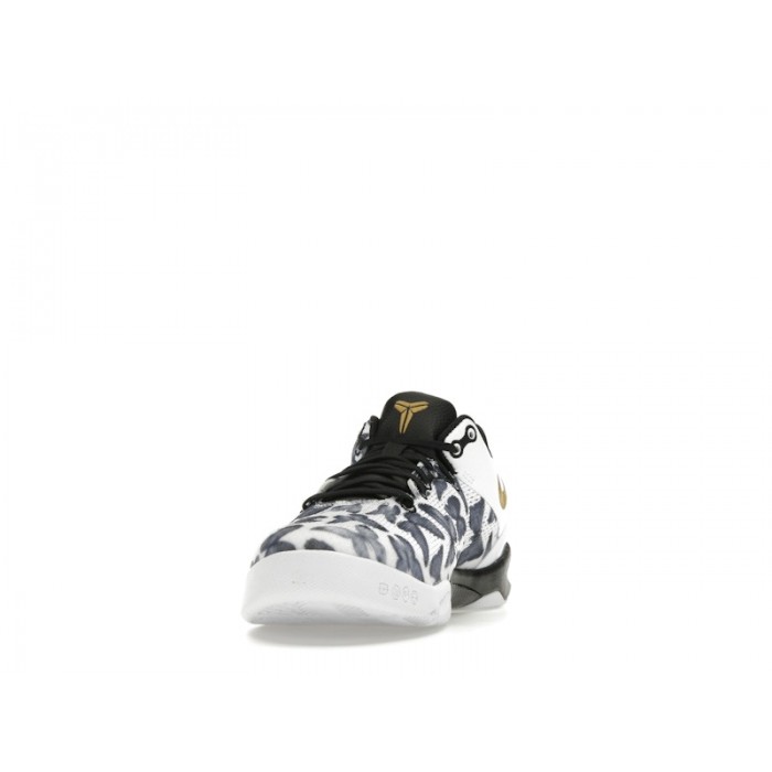 Модель представлена в цветовой схеме White/Metallic Gold/Black, где доминирует белый цвет, дополненный металлическими золотыми и черными акцентами. Светло-серый/сине-серый сетчатый верх украшен утонченным принтом «бабочки», отдающим дань памяти Джаннате «Gigi» Брайант. Золотистые элементы, включая логотипы Swoosh, надписи «GIGI» и игровой номер на пятках, подчеркивают мемориальный характер этой серии. Кроссовки являются всесезонными и подходят для использования как в спортивном зале, так и в качестве стильного дополнения к повседневному гардеробу.