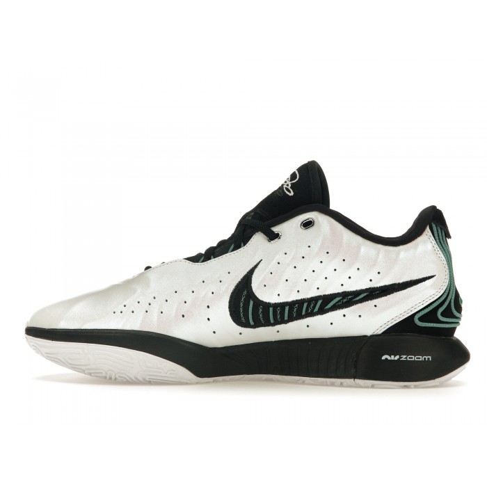 The Nike LeBron 21 Conchiolin is a performance basketball shoe with signature Nike technologies that support high-energy movements and cushion against impact stress.In fact, support is one of the main themes of this sneaker. It finds inspiration in conchiolin, a protein secreted by clams and other mollusks that helps them build their strong shells and assists in the process of forming pearls. Other pearl-inspired elements include the durable leather upper, which comes in an iridescent white that mimics the inside of a clamshell or a pearl. In addition, crease lines look like the veining inside a clamshell, and the perforations are similar to holes found on some shells. In terms of technology, this sneaker boasts mesh details with 360-degree zonal cabling and responsive Zoom Air units in the heel.