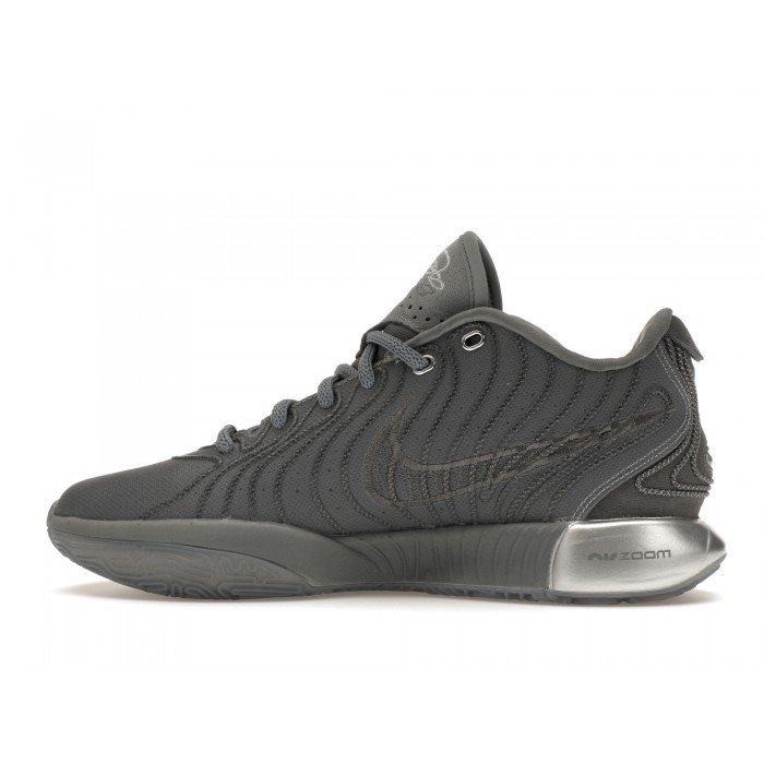 The Nike LeBron 21 Resilient dresses the LeBron 21 silhouette in an all-gray colorway with accents in metallic silver. The sneaker boasts a seamless upper and showcases LeBron James’s signature stitched on the tongue.Like other LeBron 21 versions, the Resilient embodies aspects of LeBron James’s life, in this case, his ability to overcome obstacles. In addition, the sneaker pays tribute to his daughter through the 360-degree zonal cabling system, which mimics the lines on an oyster shell. Just as an oyster protects its pearl, LeBron James protects his daughter. The cabling system reinforces the upper, while the Zoom Air units in the heel and forefoot provide cutting-edge cushioning. Completing the technical additions, full-length Cushlon foam delivers superior comfort.
