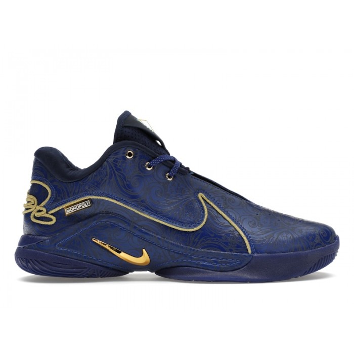 The Nike LeBron 22 Monopoly Deep Royal Blue updates the iconic LeBron 22 with a regal colorway of Deep Royal Blue with bold accents in Metallic Gold.The Monopoly Deep Royal Blue Nike LeBron 22 is part of a collaboration between Nike LeBron and Monopoly, and is the first time the “Monopoly” colorway has appeared in the Nike catalog. Deep Royal Blue symbolizes Monopoly's most valuable real estate, while Metallic Gold represents Monopoly money and LeBron's trophies. The synthetic leather upper features a Baroque-inspired pattern laser-engraved across the smooth, all-deep Royal Blue material. In terms of technology, the basketball shoe boasts Zoom Air units in the forefoot and heel and saddle wings for midfoot stability.