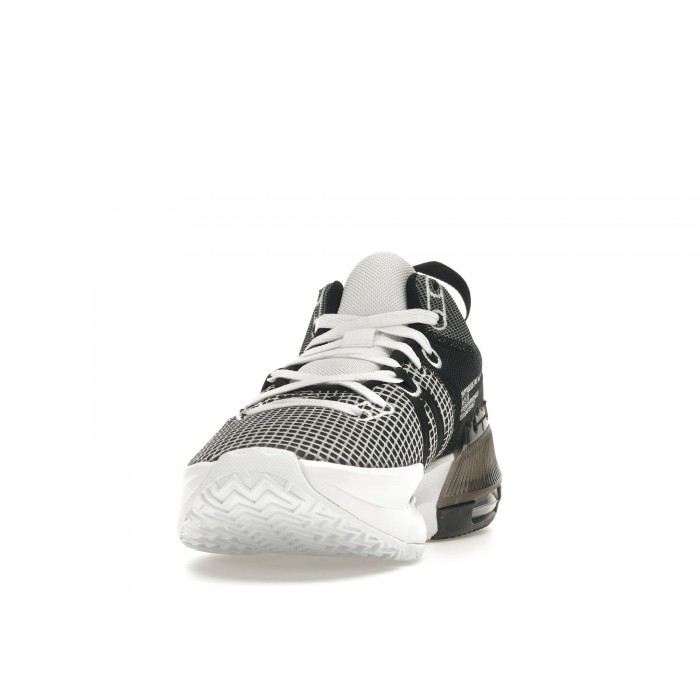 Модель Nike LeBron Witness 7 White Black Metallic Silver отличает современный индустриальный дизайн с элементами деконструкции, который сочетает эстетику и функциональность. Слегка завышенный профиль обеспечивает дополнительную поддержку голеностопа, а продуманная конструкция гарантирует стабильность при резких сменах направления и быстрых манёврах, что делает их отличным выбором для динамичных сценариев игры в баскетбол.