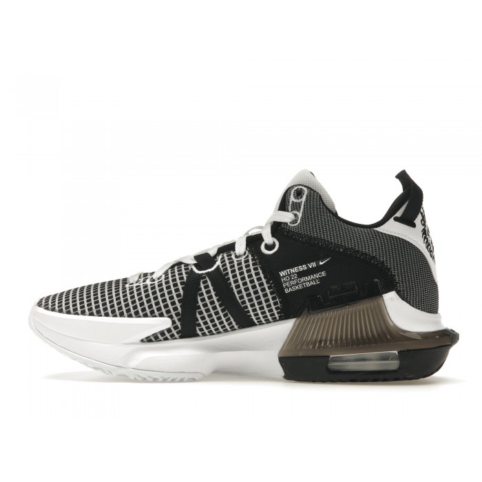Классическая бело-чёрная расцветка с серебристыми акцентами делает Nike LeBron Witness 7 универсальными и легко сочетаемыми с различной спортивной формой. Этот цветовой блок подчёркивает динамичный силуэт и подходит для круглогодичного использования, отражая энергичный стиль игры LeBron James и предоставляя баскетболистам надёжную обувь для тренировок и соревнований.