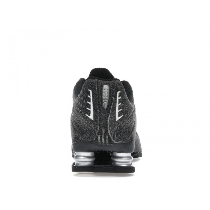 - Дизайн: минималистичный логотип Swoosh белого цвета на носке и боковых панелях; металлические элементы Nike Shox.