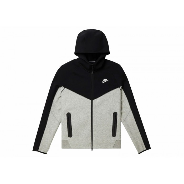 We particularly like the color blocking of this hoodie, while the top part is mainly black and grey heather adorns the bottom and undersides, it works well and presents a streamlined fit. When it debuted on August 12, 2023, the Nike Sportswear Tech Fleece Windrunner Full-Zip Hoodie Dark Grey Heather/Black/White had a $145 price tag.