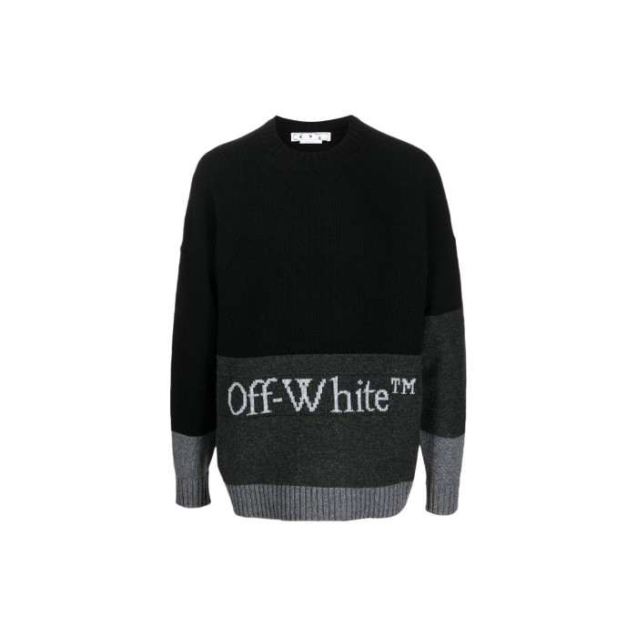 Описание OFF-WHITE Blocked Intarsia-Logo Wool Crew Sweater Black/Grey