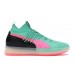 The Puma Clyde Court Disrupt South Beach is a stylish and comfortable basketball shoe that is perfect for both on and off the court. The shoe features a vibrant colorway that is inspired by the iconic South Beach area of Miami, with a mix of teal, pink, and black accents. The upper is made from a breathable knit material that provides a snug and supportive fit, while the midsole is made from Puma's proprietary NRGY cushioning technology, which offers excellent shock absorption and energy return. One of the standout features of the Puma Clyde Court Disrupt South Beach is its unique lacing system, which is designed to provide a secure and customizable fit. The shoe also features a rubber outsole that provides excellent traction on both indoor and outdoor surfaces. The Puma Clyde Court Disrupt South Beach was released on December 8th, 2018, and has a retail price of $120. Overall, this shoe is a great choice for basketball players who want a stylish and comfortable shoe that performs well on the court. Something we love about the Puma Clyde Court Disrupt South Beach is its eye-catching colorway, which is sure to turn heads both on and off the court.