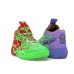 Puma LaMelo Ball MB04 Teenage Mutant Ninja Turtles Raphael & Donatello выделяются асимметричным дизайном, где каждый кроссовок имеет уникальную цветовую схему, вдохновленную персонажами Teenage Mutant Ninja Turtles — Рафаэлем и Донателло. Левый кроссовок выполнен в сочетании Fluro Green и Dark Amethyst, а правый — в Fluro Green и PUMA Red. Дизайн включает графические элементы, такие как надписи "LOVE" и изображения мечей, а также брендинг Teenage Mutant Ninja Turtles, M.E.L.O. и Puma на заднике. Модель подходит для динамичной игры в баскетбол и повседневного использования.