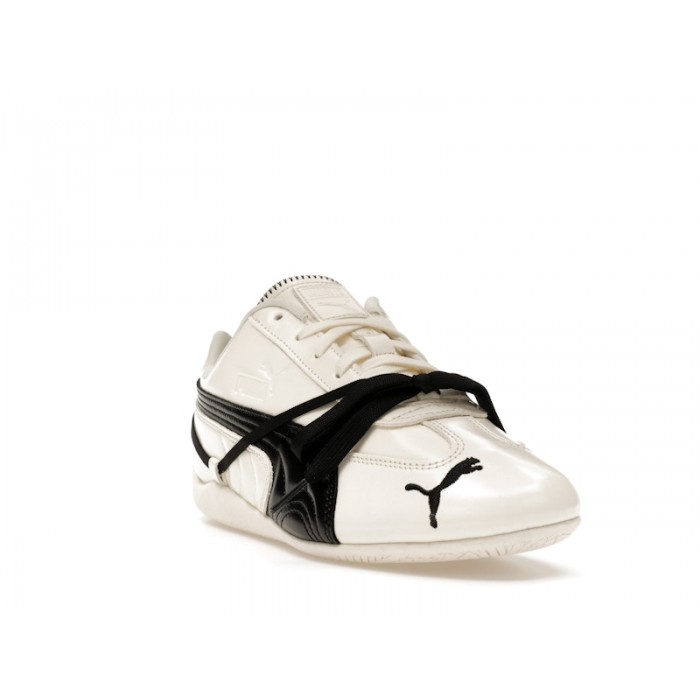 Верх кроссовок выполнен из высококачественной мягкой натуральной кожи тёплого белого оттенка, что придаёт обуви премиальный вид и обеспечивает долговечность. Контрастные чёрные элементы, включая фирменную полосу Formstrip Puma из кожи, добавляют динамичности дизайну. Внутренняя отделка из дышащей текстильной подкладки способствует воздухопроницаемости, поддерживая комфортный микроклимат для стопы. Уникальная система шнуровки с дополнительными балетными лентами не только обеспечивает надёжную фиксацию, но и служит ярким акцентным элементом.