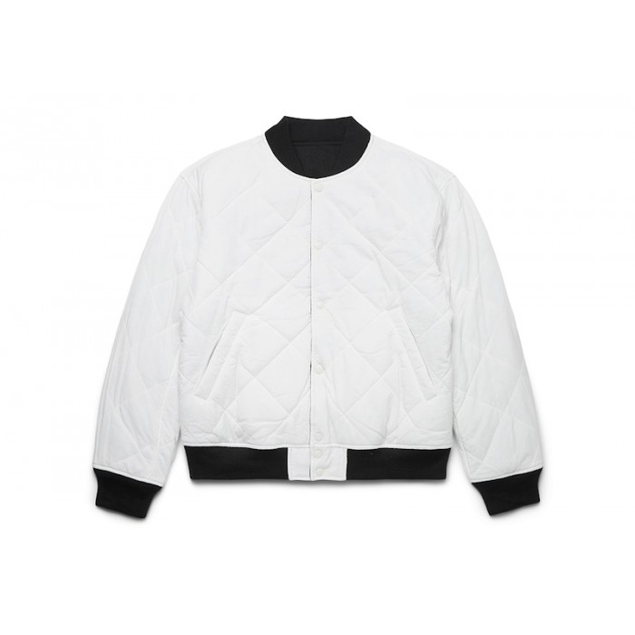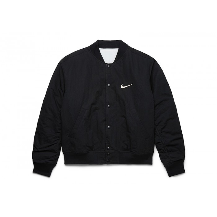 For decades now, Stussy and Nike have collaborated to create sneakers, apparel, accessories, and more. The Stussy x Nike Reversible Varsity Jacket Black/Sail proves that these two entities make a great pair.This reversible jacket, which is black on one side and sail on the other, is made from a cotton/nylon blend to make it comfortable and durable. It also has a nylon lining and a polyester fill to make it warmer. It contains a handful of small details, like ribbed cuffs and front welt pockets, that ties the jacket's design together.