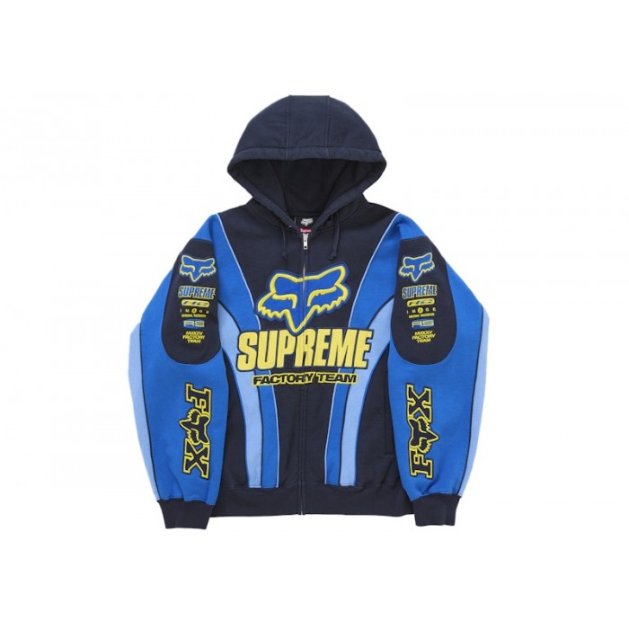 Гарантия нашей работы Supreme Fox Racing Zip Up Hooded Sweatshirt Blue