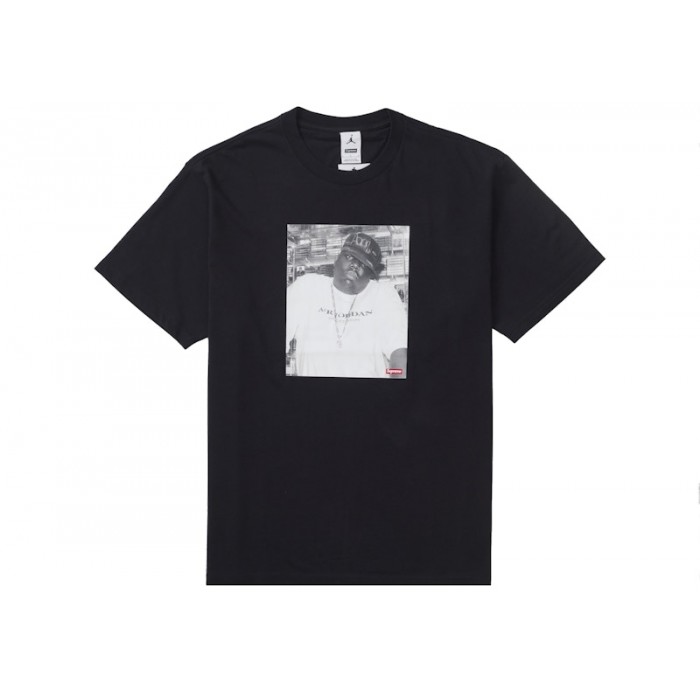 The Supreme Jordan Biggie S/S Top Black is a high-quality t-shirt designed as a collaboration between the Supreme brand and the popular Jordan sportswear brand.