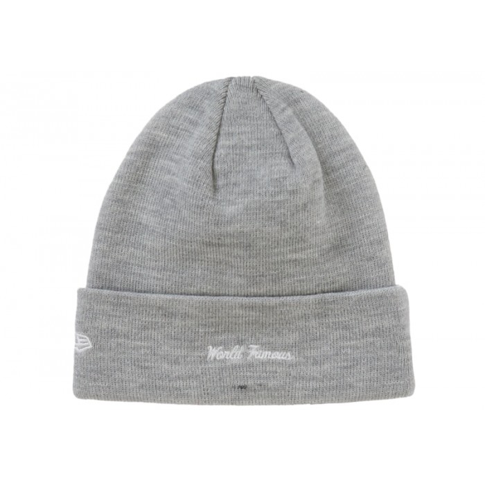 The Supreme New Era Box Logo Beanie (FW22) Heather Grey, part of the Fall/Winter 2022 collection, presents an acrylic accessory crafted for durability and warmth, in collaboration with New Era.The Supreme New Era Box Logo Beanie (FW22) Heather Grey cuffed design ensures a snug fit and enhanced insulation. Reflecting Supreme's bold branding approach, this collaboration with New Era showcases the signature box logo prominently on the front. Alongside, the New Era logo is displayed on the side, while a "World Famous" motif adorns the rear. The heather grey hue of the beanie amplifies its versatile and enduring appeal.