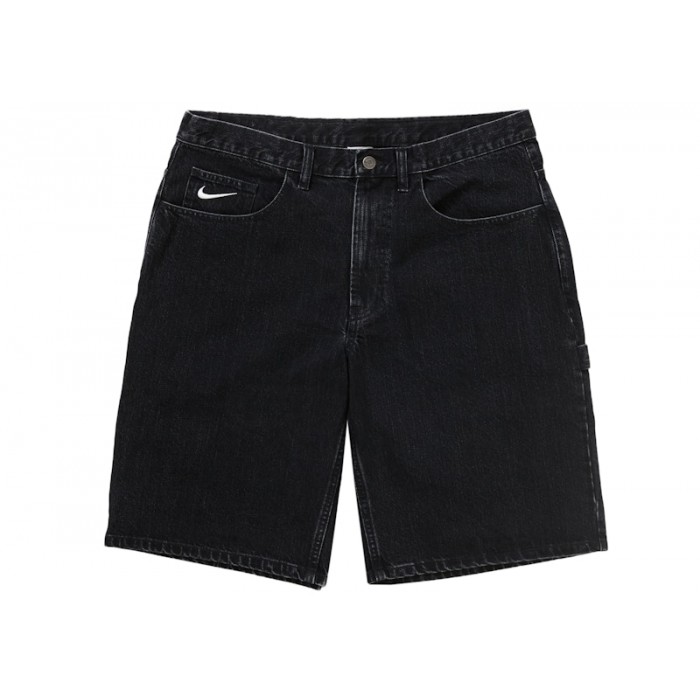 The Supreme Nike Denim Short in black boasts a classic design, with a 5-pocket style and button fly. The shorts' denim fabric and tonal stitching are a timeless element of denim design, while the Supreme logo embroidery adds a subtle touch of branding.The black Denim Short by Supreme & Nike features a hardy structure with thick denim fabric that resists wear and tear. The shorts' hardware, including the button fly and rivets, is reinforced for added durability. The clean design and lack of excessive embellishments create a timeless silhouette that works well for both casual and dressed-up occasions.