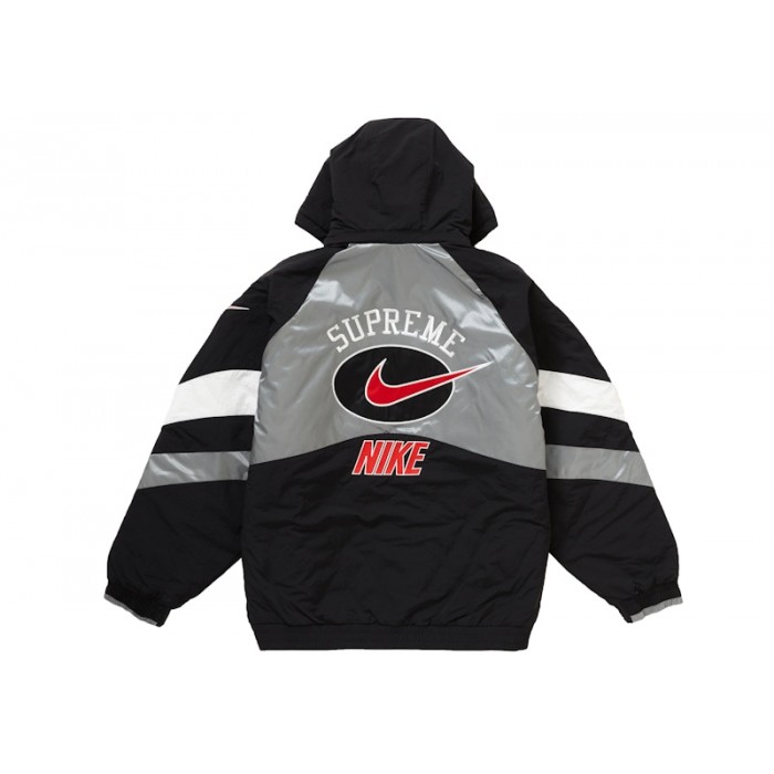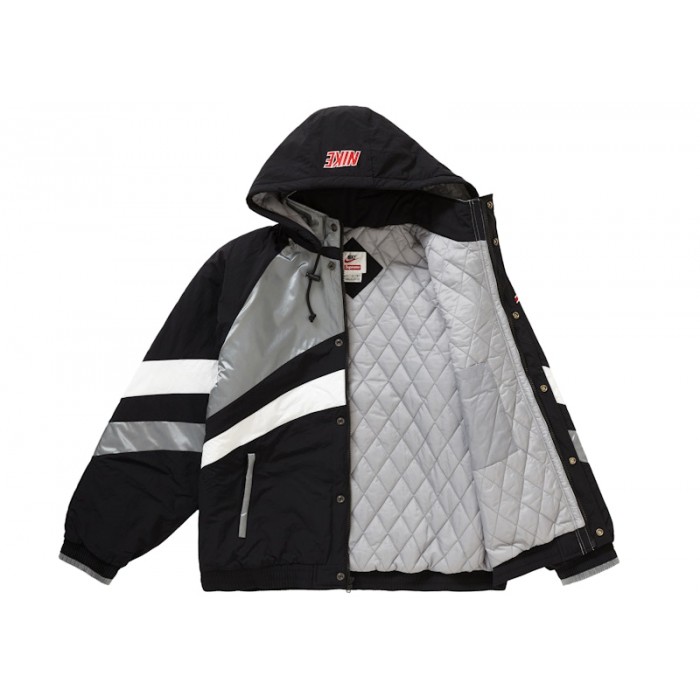 After releasing a collaborative Nike Air Max Tailwind 4 early in their 2019 season, Supreme and Nike have returned for a second release in SS19, this time featuring apparel. Despite being released in May, the collection mostly featured items you'd see in a fall/winter release, including sweaters, hoodies, and sport jackets, all of the vintage looking variety. The water resistant Supreme x Nike Hooded Sport Jacket released in three colorways and feature a quilted inner lining as well as a removable hood. The green, purple, and silver jackets dropped on Thursday, May 23rd, 2019 and retailed at $248 USD.Основные характеристики Supreme Nike Hooded Sport Jacket Silver