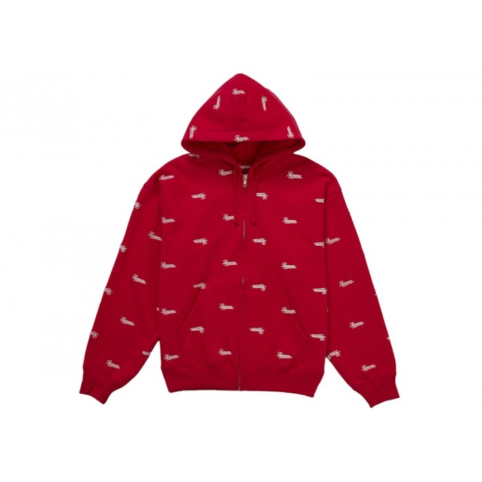 Описание Supreme Repeat Script Zip Up Hooded Sweatshirt Red