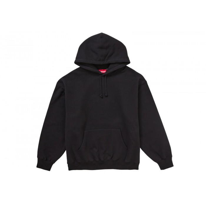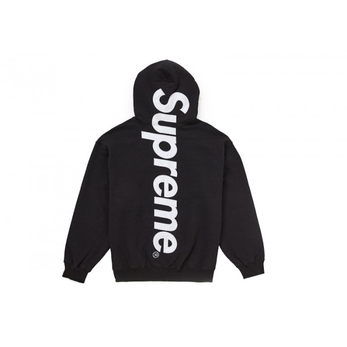 The Supreme Satin Applique Hooded Sweatshirt (FW24) Black is a hoodie released by the streetwear brand with a unique and eye-catching branding element.This version of the Supreme Satin Applique Hooded Sweatshirt (FW24) comes in black, which is the dominant color across the entire design. The front of the sweatshirt is void of any branding, with just a front pocket and drawstrings for adjusting the hood. The Supreme branding is on the back of the sweatshirt in a satin applique. It runs vertically down the back from the hood to the bottom in large white lettering. Made from cotton, the sweatshirt is designed for warmth with or without layers underneath.