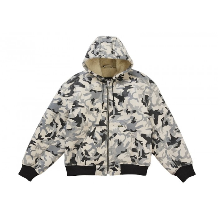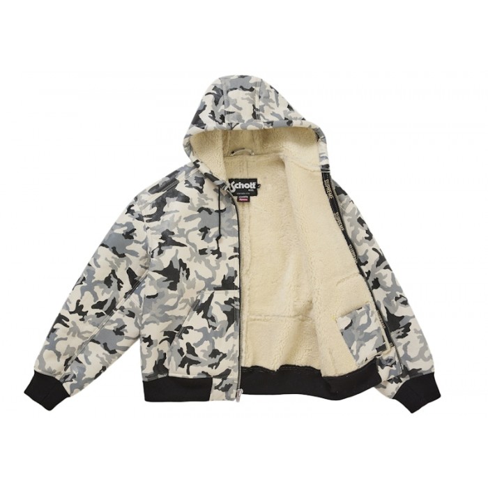 Описание Supreme Schott Shearling Hooded Work Jacket Snow Camo