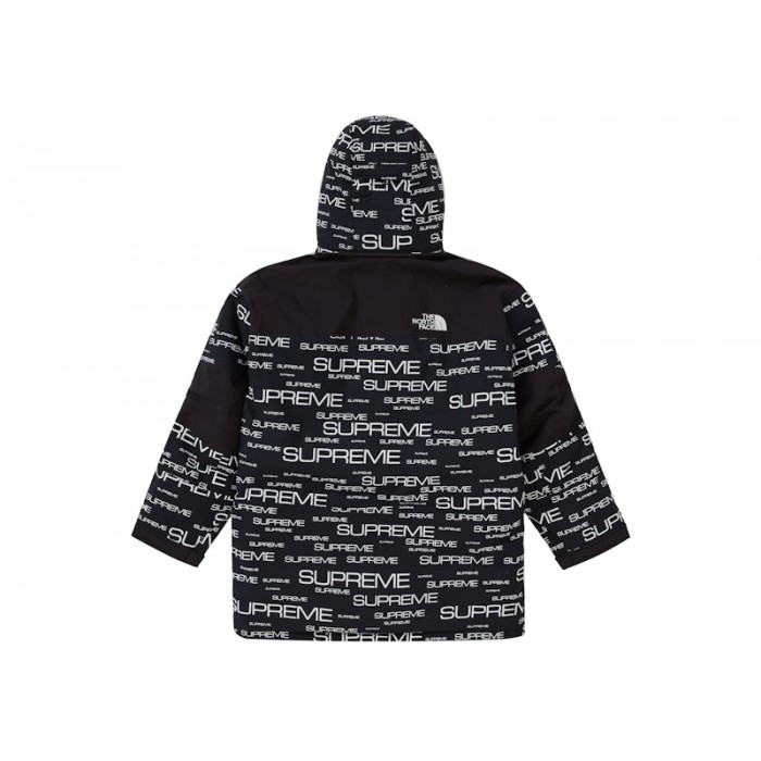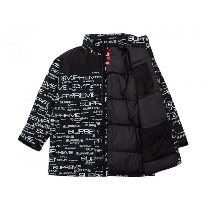 This black Supreme The North Face Jacket was released in October of 2021 as a part of the two brands' first collaborative delivery of the Fall/Winter 2021 season.This release featured the inclusion of three new Supreme The North Face Jackets. This particular jacket features water resistant nylon and 700-Fill Down. It also features an all-over Supreme print and The North Face logos on the sleeve and chest.