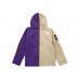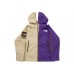 The Supreme The North Face Split Taped Seam Shell Jacket is a weather-resistant jacket designed as part of a team effort between Supreme and The North Face.This iteration of the Supreme The North Face Split Taped Seam Shell Jacket comes in a tan and purple colorway. The tan color appears to the left side of the zipper of this hooded jacket, while the purple color appears to the right. The tan arm sports black patches on the sleeve bearing The North Face and the Supreme logos in white text, while the purple side features The North Face logo in white on the chest and "SUPREME" running down the arm. The jacket has three pockets: one on each side and another on the chest. The back of the jacket also features The North Face logo in white on the tan side.