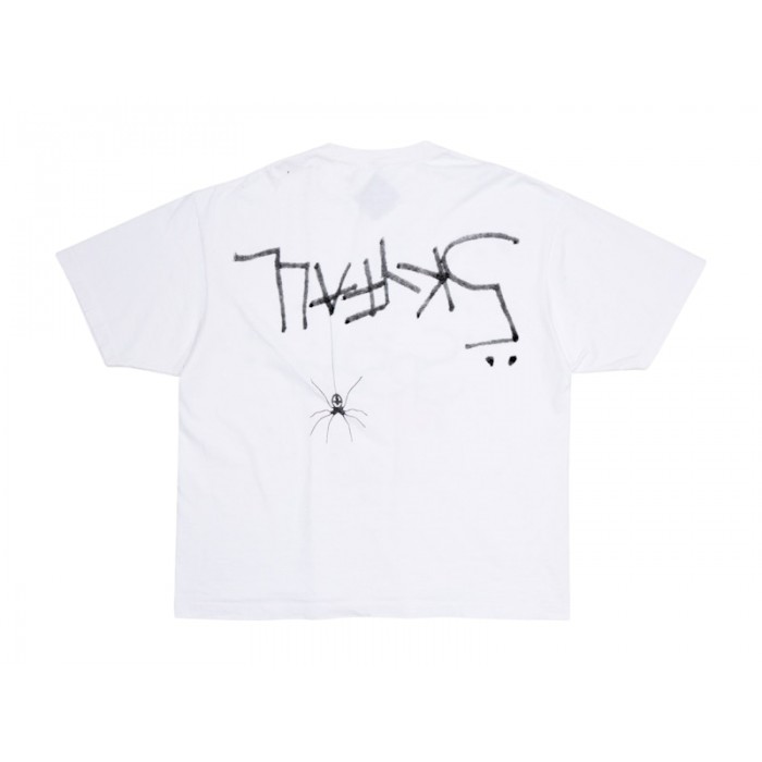 This is a tee shirt that pays homage to the second mixtape Travis Scott released, which was called Days Before Rodeo. The focal point of this shirt is an image of a cowboy with the word Rodeo in red on superimposed on it, with the Sp5der brand then superimposed in black above the two. Flip to the back, and you’ll spot 5KYFALL written upside down with a spider dangling from the A. This image is in black.