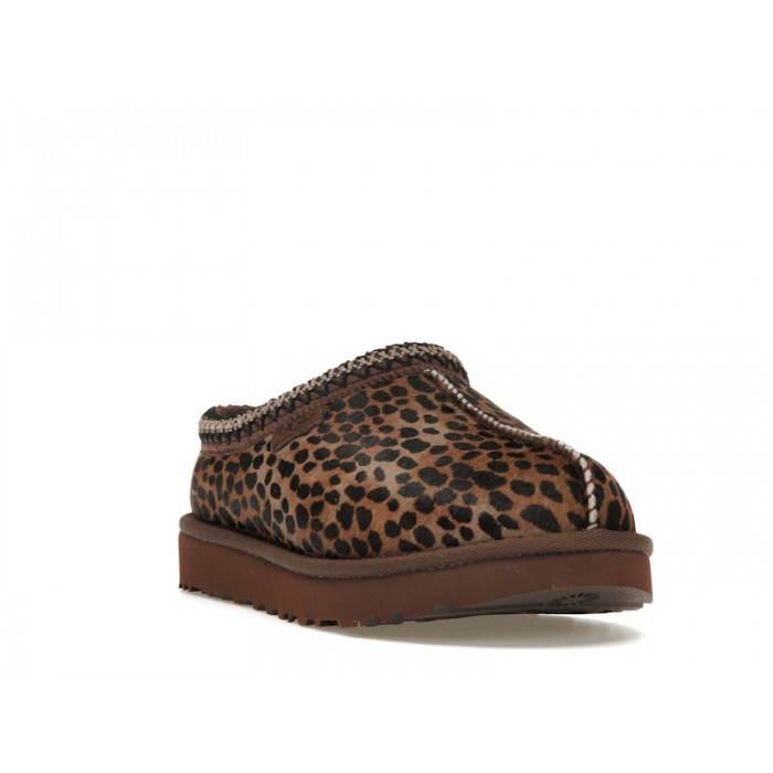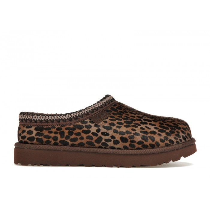 Верх обуви выполнен из натуральной телячьей шкуры (calf hair), которая обработана и окрашена для создания яркого леопардового узора. Эта шероховатая текстура придает модели уникальный внешний вид и дополнительную глубину. Внутренняя часть полностью выстлана UGGplush™, что создает ощущение непревзойденной мягкости и уюта. Легкая подошва из Sugarcane EVA предлагает надежное сцепление и долговечность, при этом являясь более экологичным выбором. Замшевая окантовка на пятке и кожаная бирка с тисненым логотипом UGG, вшитая в оплетку UGGbraid, подчеркивают внимание к деталям и премиальное качество материалов.