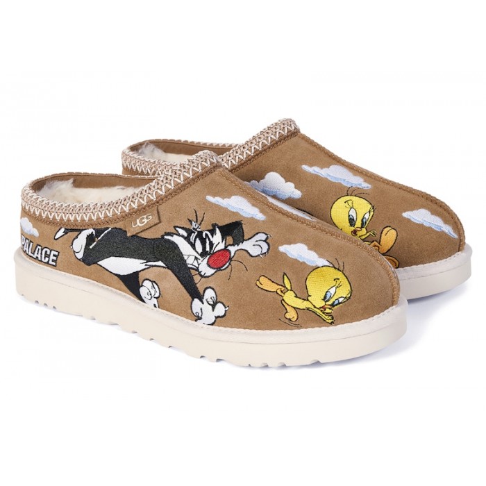 UGG Tasman Slipper Palace x Looney Tunes Chestnut (SKU: 1181910-CHE) — это лимитированная модель тапочек, созданная в рамках тройной коллаборации UGG, Palace и Looney Tunes, отличающаяся верхом из премиальной замши с яркой вышивкой и инновационной подошвой Sugarcane EVA™.