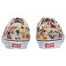 Цветовое решение White/Multi-Color сочетает чистый белый фон с яркой мультицветной графикой, отсылающей к работам Mike Kelley. Пара легко вписывается в минималистичные образы, выступая акцентной деталью, и подходит для носки в весенне-летний сезон и сухую осень, когда особенно уместны светлые и насыщенные цветовые сочетания.