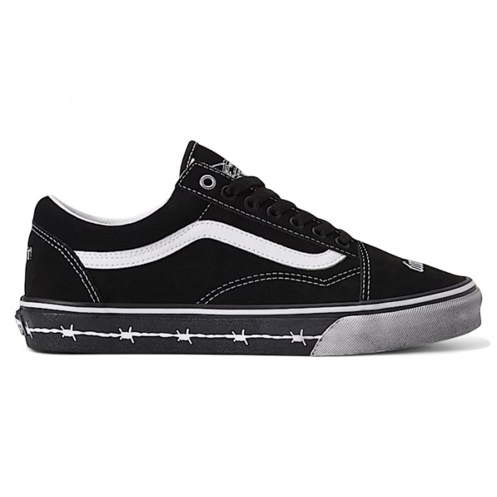 - Детализированная графика: Орнамент из колючей проволоки, обвивающий боковую часть подошвы (foxing), вдохновлён татуировкой Баркера.